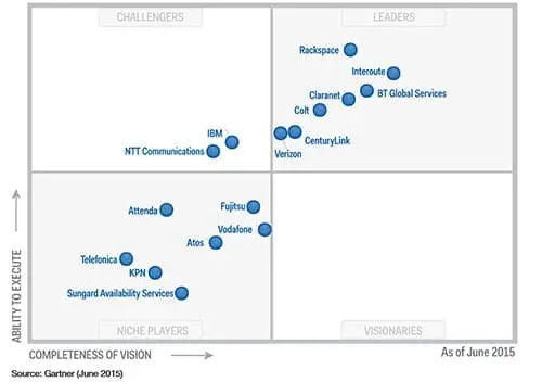 La valoración del Cuadrante Mágico de Gartner ofrece panorámicas de los mercados y de sus participantes. Permite a los usuarios localizar las fortalezas de los proveedores en relación a sus necesidades presentes y futuras. Para evaluar la amplitud de visión y la habilidad de ejecución del profolio de hosting de Claranet, Gartner se ha basado en 15 criterios distintos.