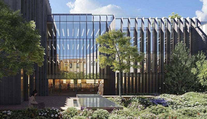 El objetivo de la obra es recuperar la tradición de los edificios y reinterpretarla con un punto de vista contemporáneo y unas características únicas que no serían posibles en otra ubicación. “Además de mantener y poner en valor los muros existentes en planta baja, las fachadas nuevas hacia la calle se mimetizan con las del casco histórico, usando la tradicional piedra natural de tonos cálidos. Solo hacia el patio interior es donde las fachadas toman un aspecto contemporáneo adecuado para un uso dotacional”, ha explicado el arquitecto logroñés y socio del estudio Kengo Kuma & Associates, Javier Villar. Por tanto, un diseño que respeta al máximo el entorno en el que se integra con el uso de materiales naturales y tradicionales de la zona y creando una arquitectura de escala humana transmitiendo una sensación de intimidad para mejorar el espacio urbano en el que se asienta.